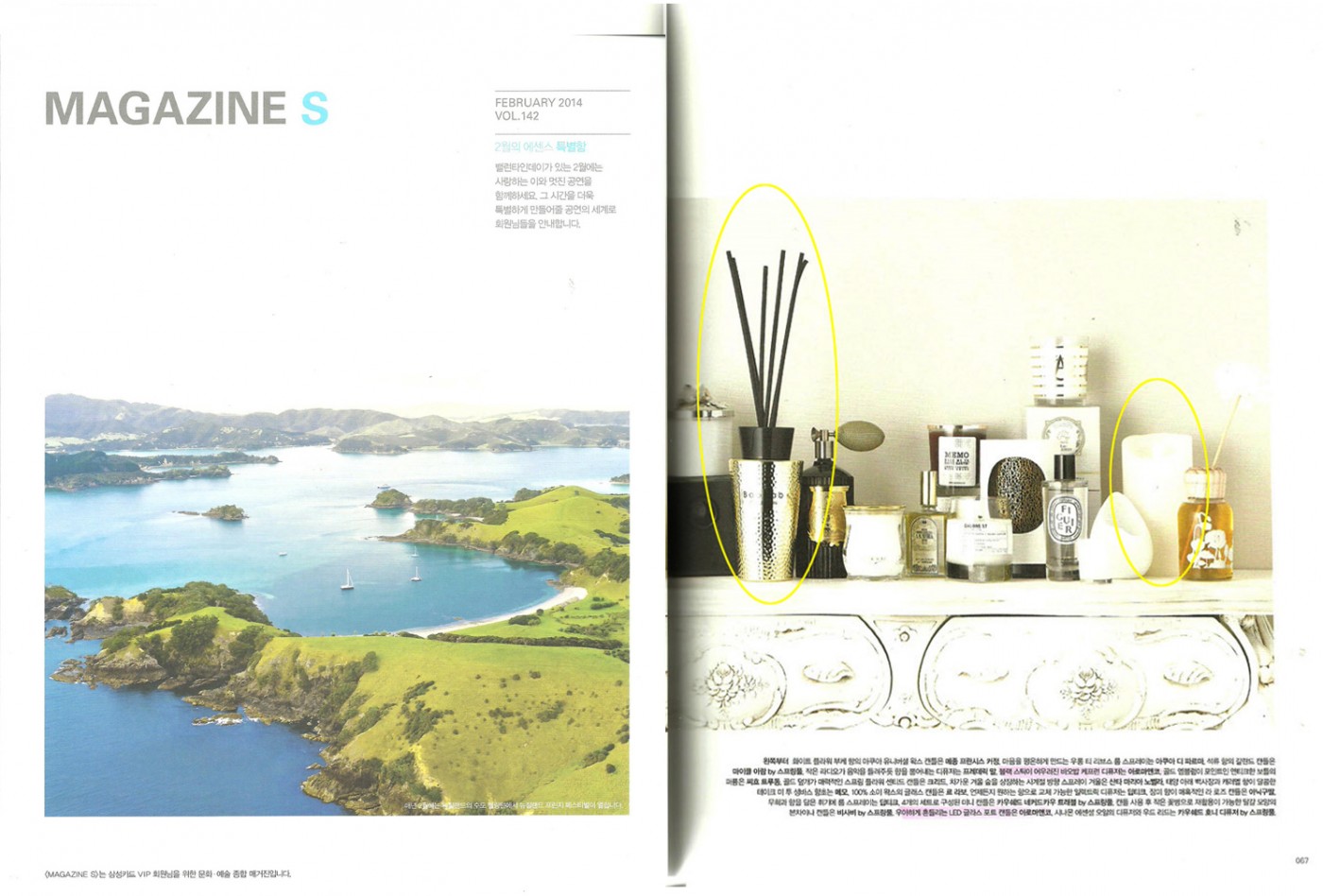 제목 매거진 S(Feb.2014) 타이틀 magazine S (Feb.2014) 등록일 2018-11-30 조회수 6359 - 공간을 향기롭게 가꾸는 홈프래그런스 -Baobab Collection : 일렉트럼 dark 디퓨저(케프런)Aromaco : LED 캔들(M) 목록으로
